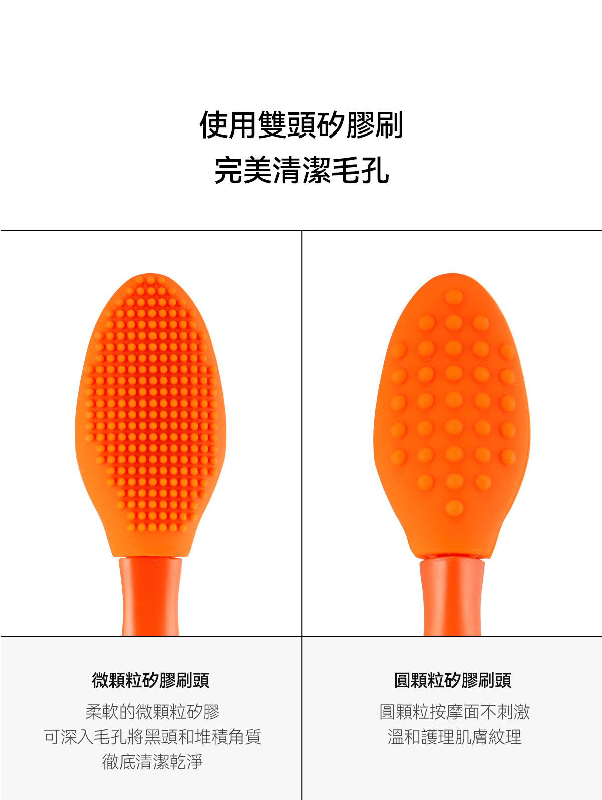 + 3 in 1 雙面設計溫和按摩&深入毛孔清潔