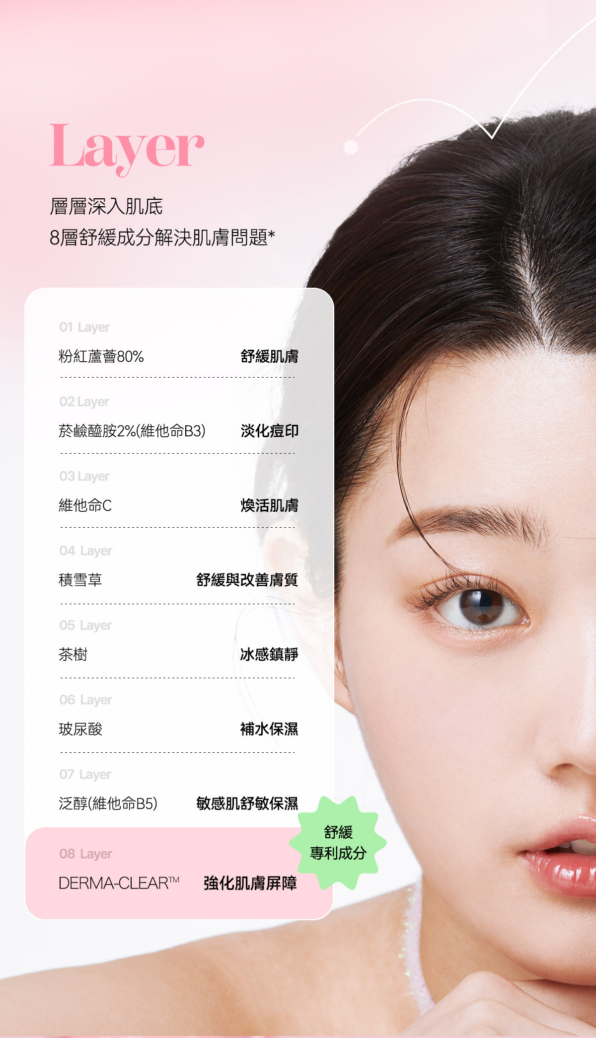 + 含4種維他命/茶樹/積雪草等 8層鎮靜成分