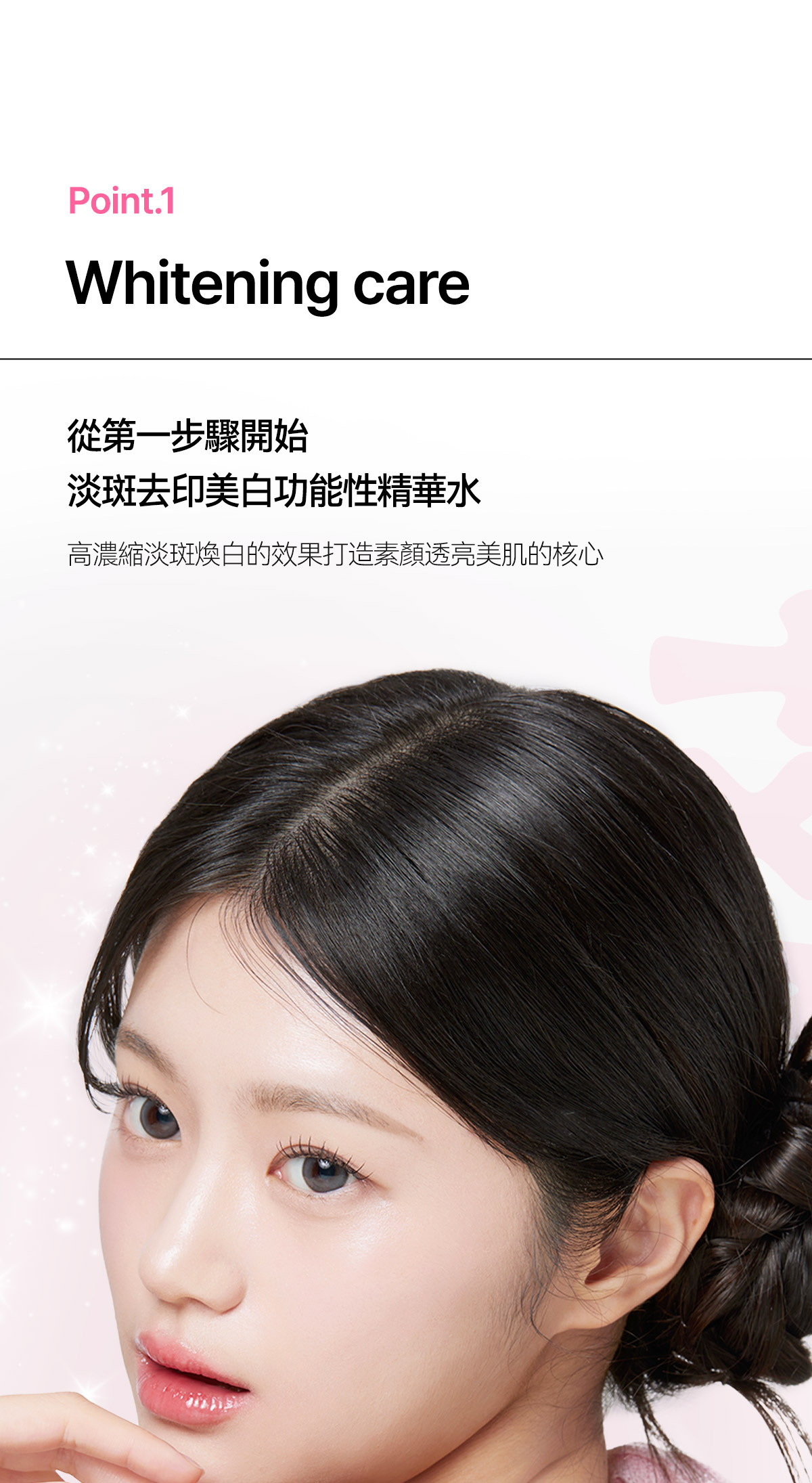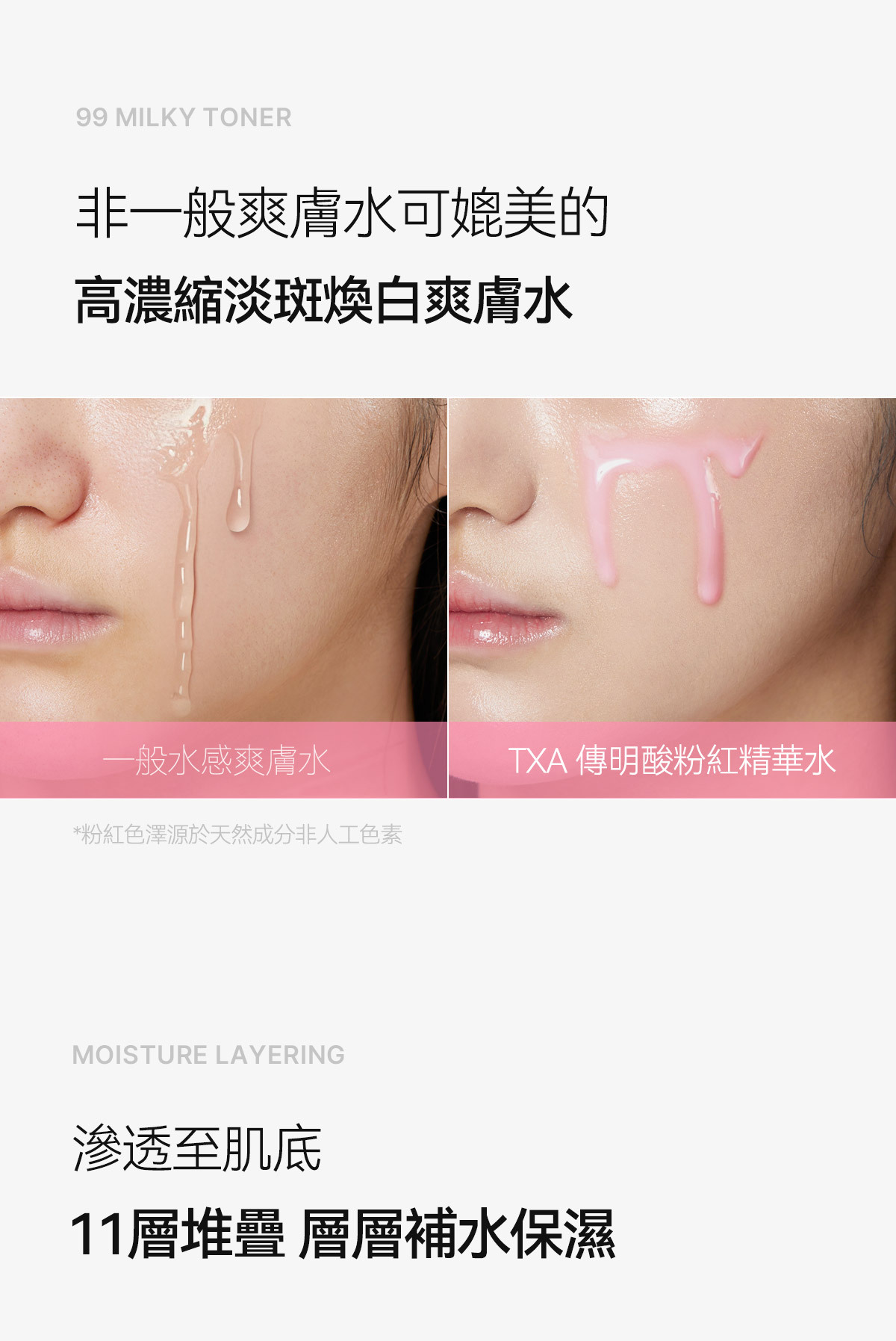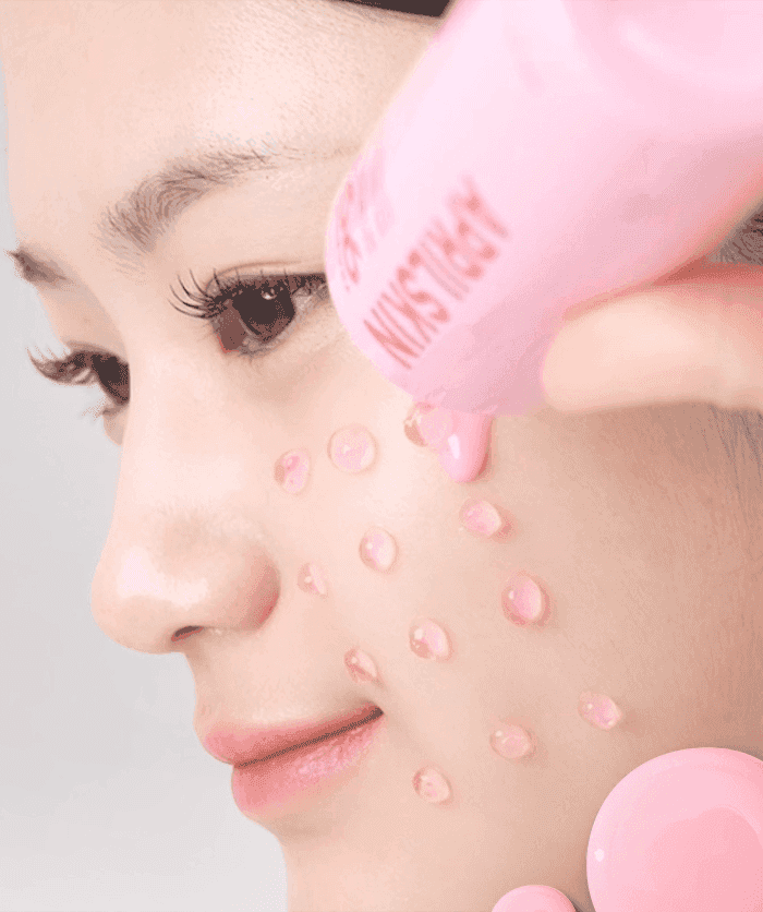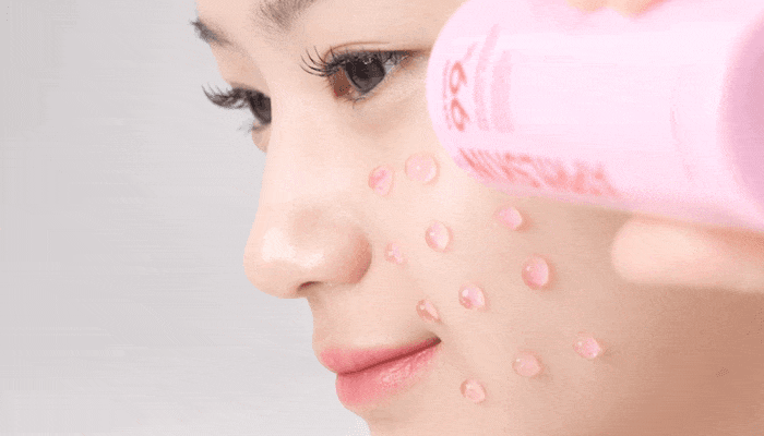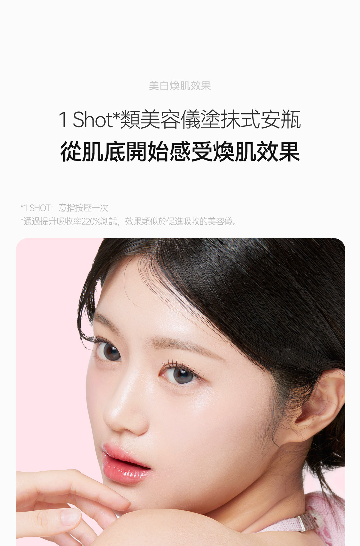 Step3 將安瓶擠在面部在上方倒入精華水 一起按摩吸收 加強提亮效果 帶給肌膚水潤光澤感