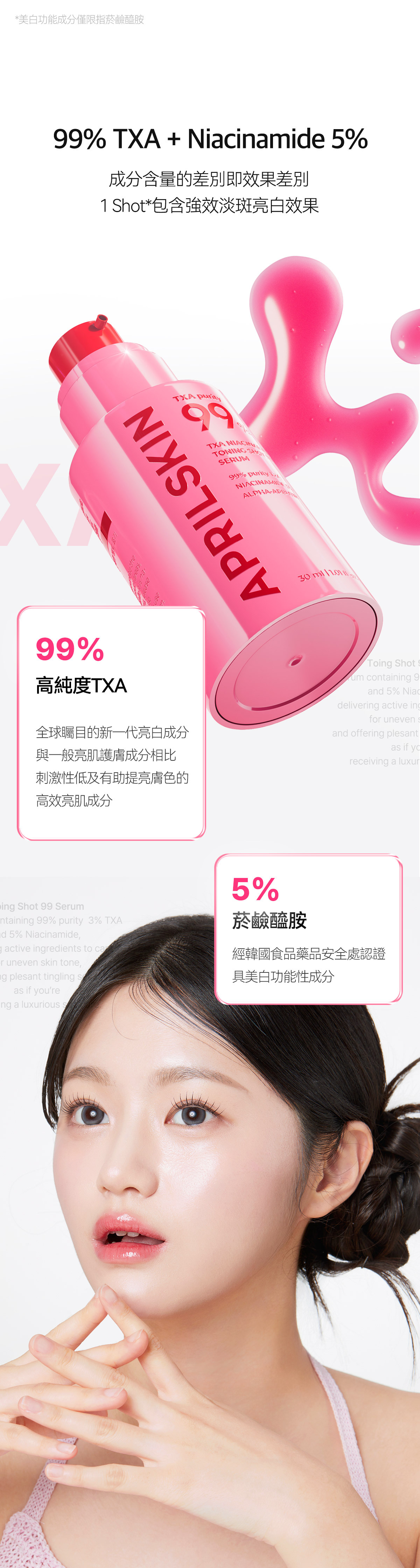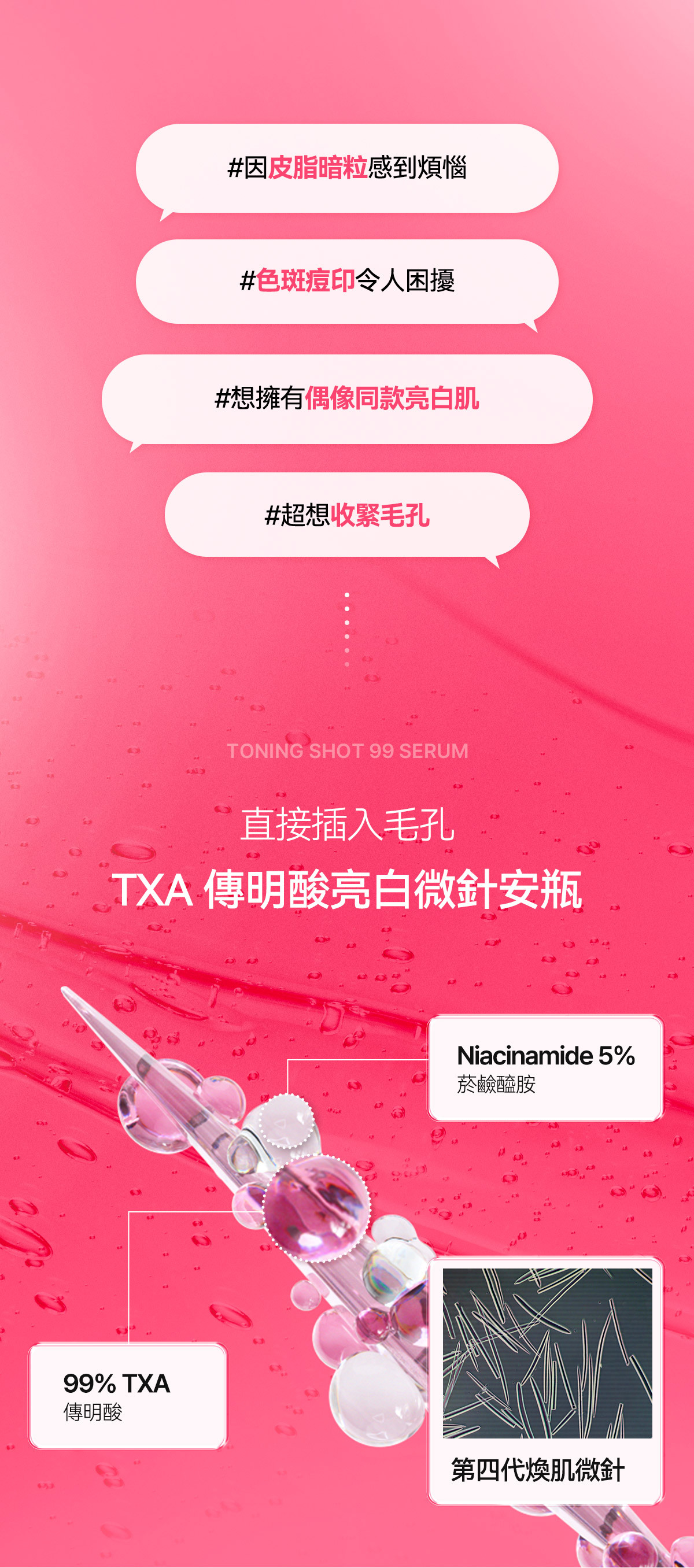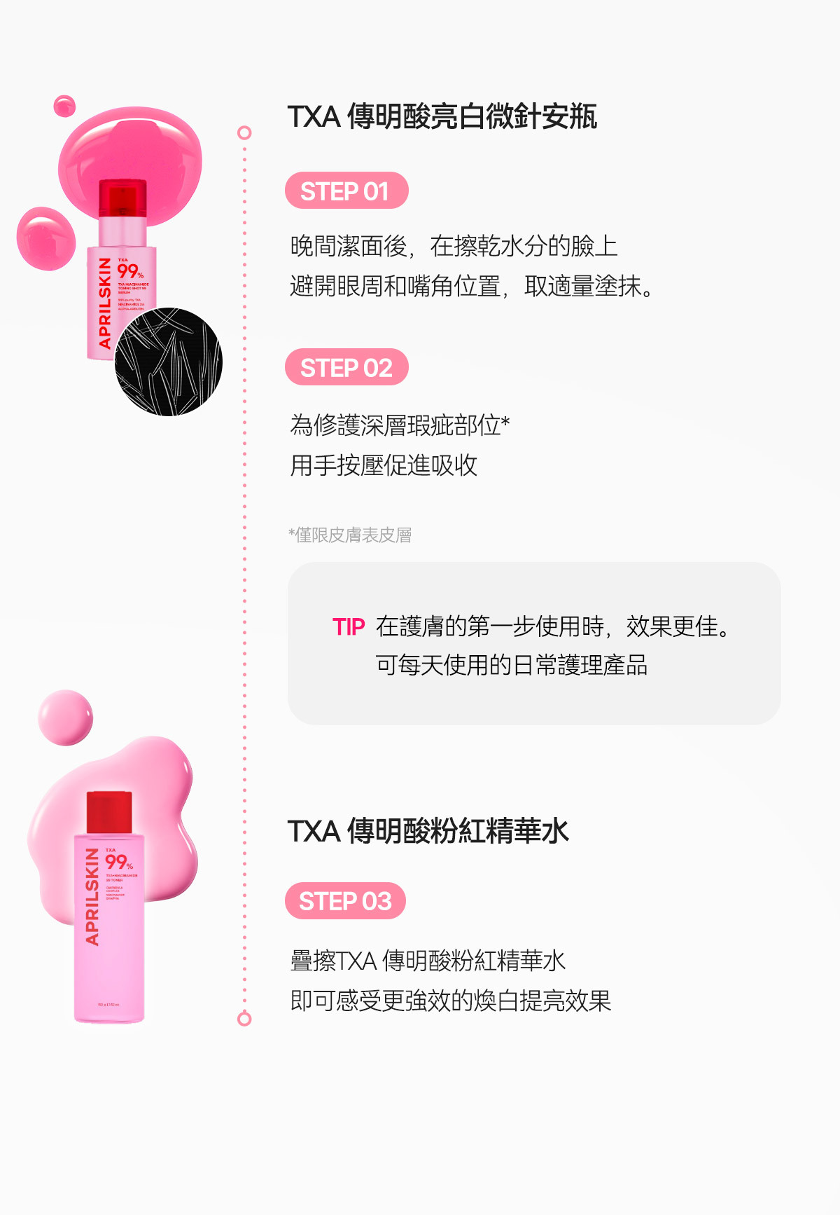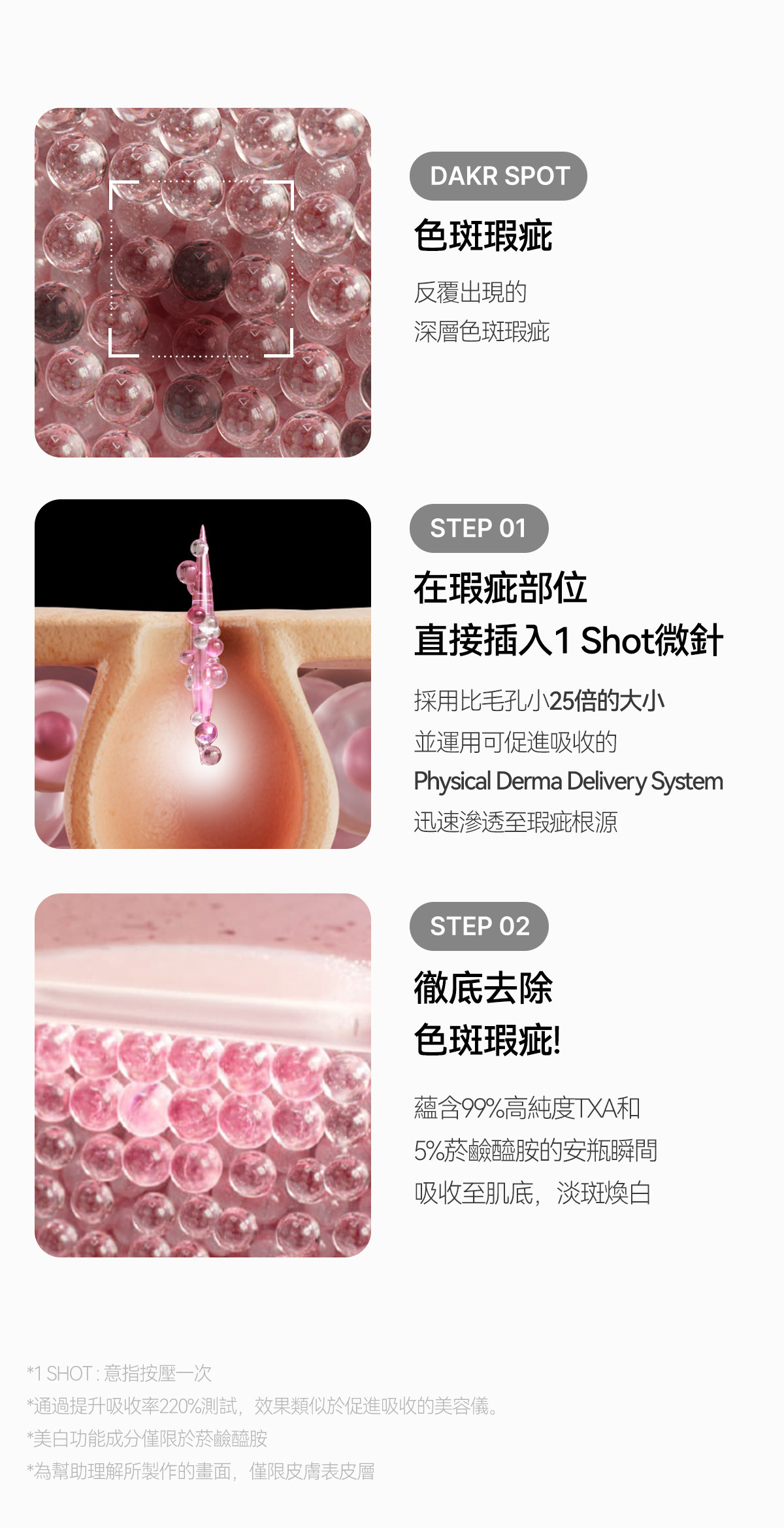Step2 塗抹TXA亮白微針安瓶 直插斑點色素有效美白 打造素顏級水光白淨